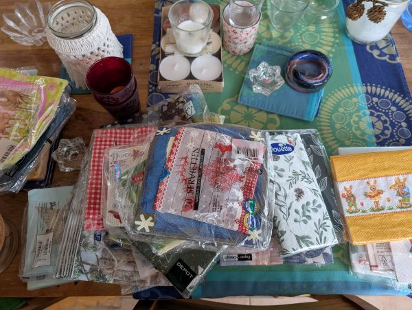 Wir haben uns vorgenommen täglich ein anderes „Schmuddeleck“ in der Wohnung aufzuräumen. Im Geschirrschrank hat sich so einiges an Kram (Servietten, Kerzenständer und Blumenvasen) breit gemacht. Das wird mal alles gründlich aussortiert.