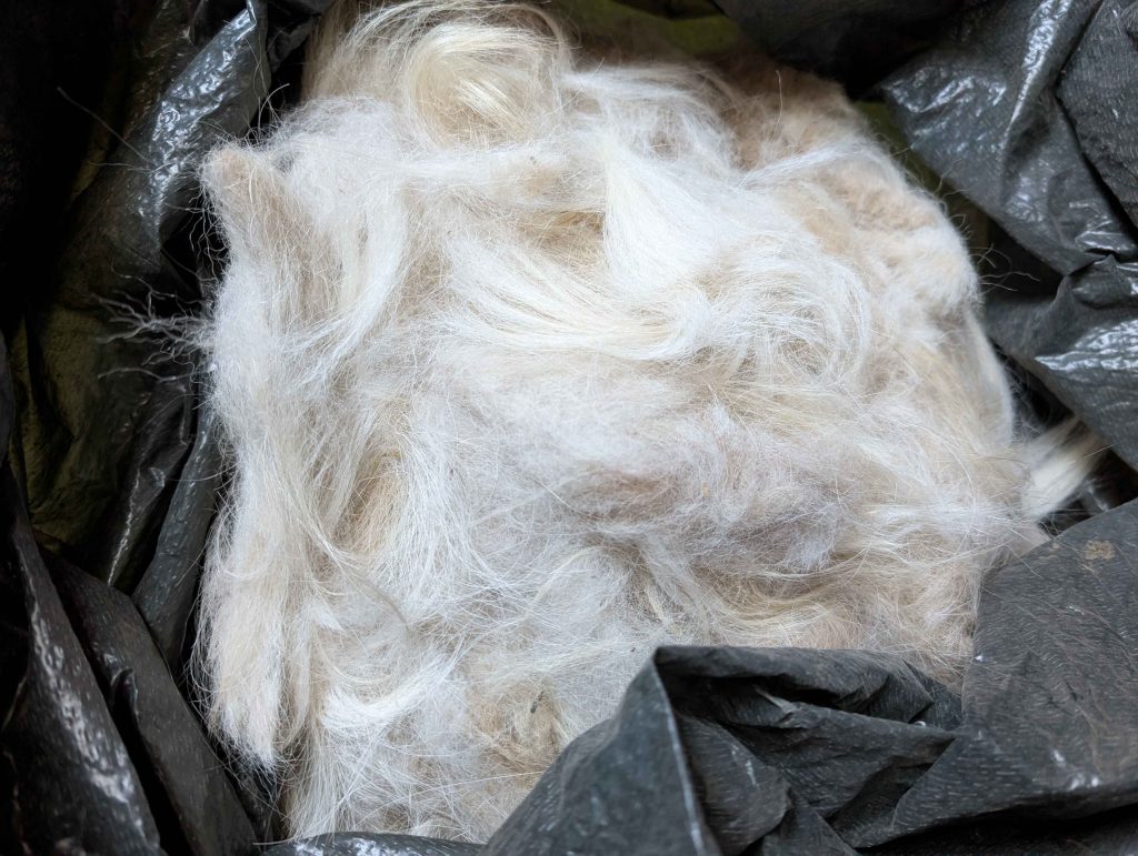 Mein Mann hat einen Sack voll Lama Rohwolle mitgebracht. Er hat sie von einer Kollegin im Tausch gegen unseren Apfelsaft bekommen. Ich freue mich riesig (und die Kollegin auch)