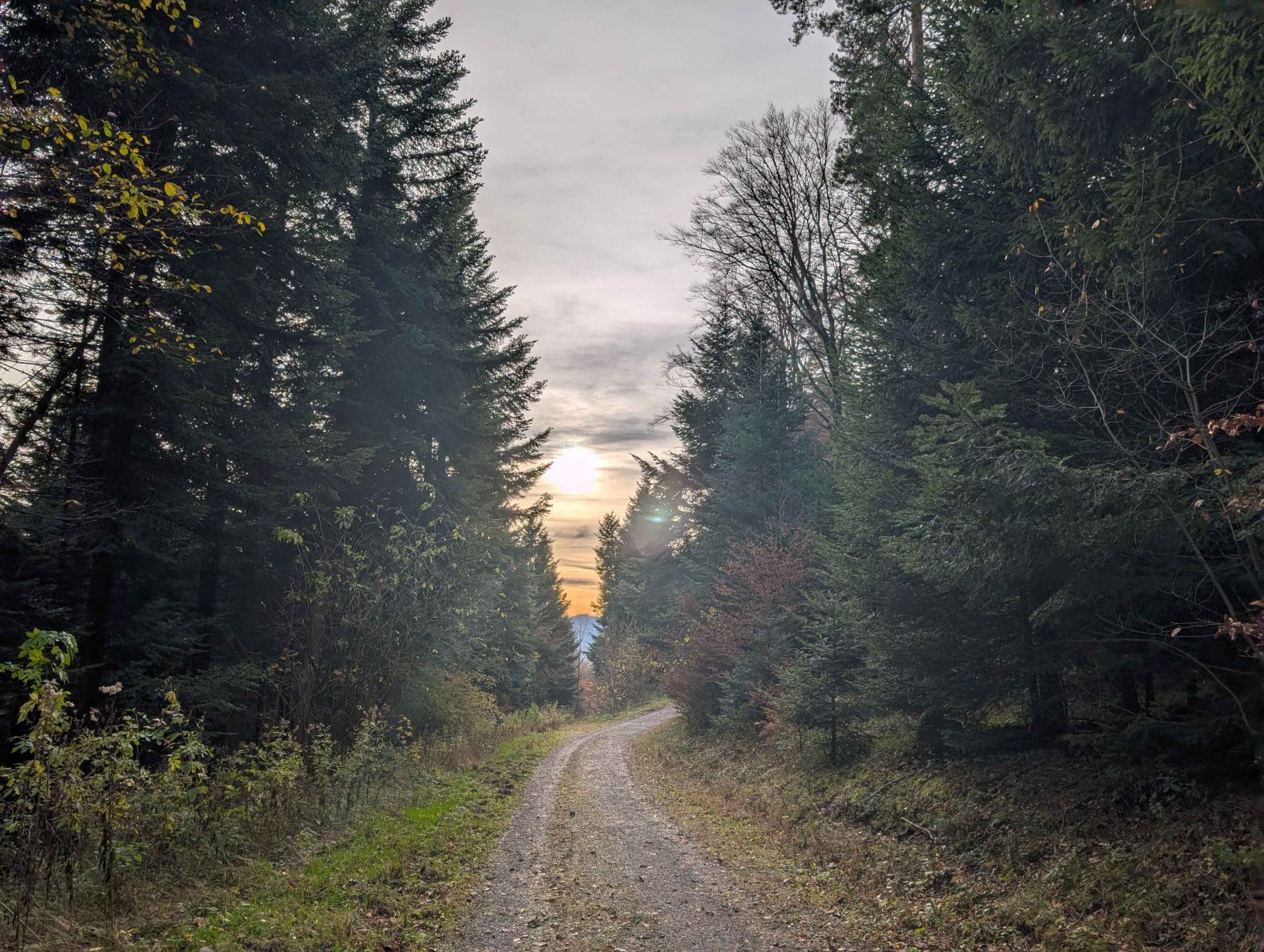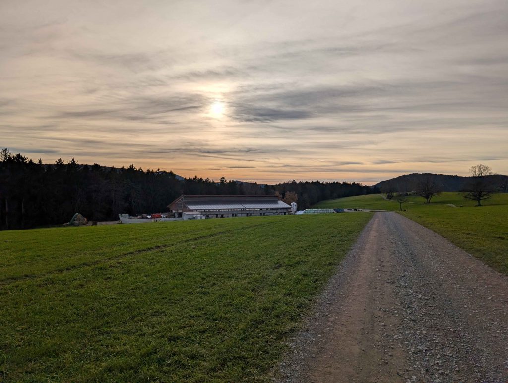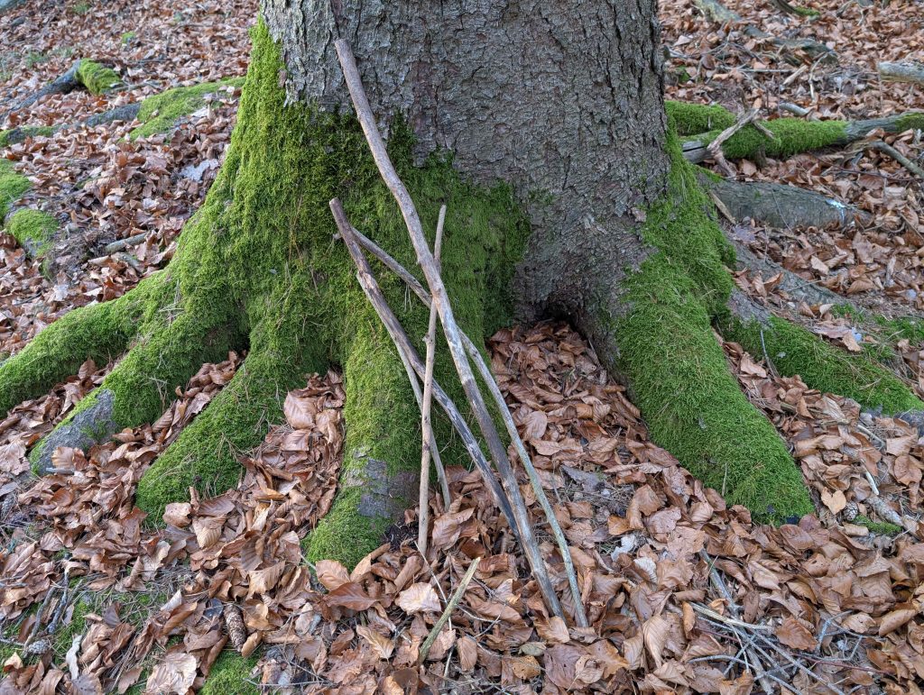 Okay, das Thermometer liegt in der Sonne, aber es ist herrlich draußen. Sonnig und windstill. Also auf zu einem Spaziergang in den Wald.