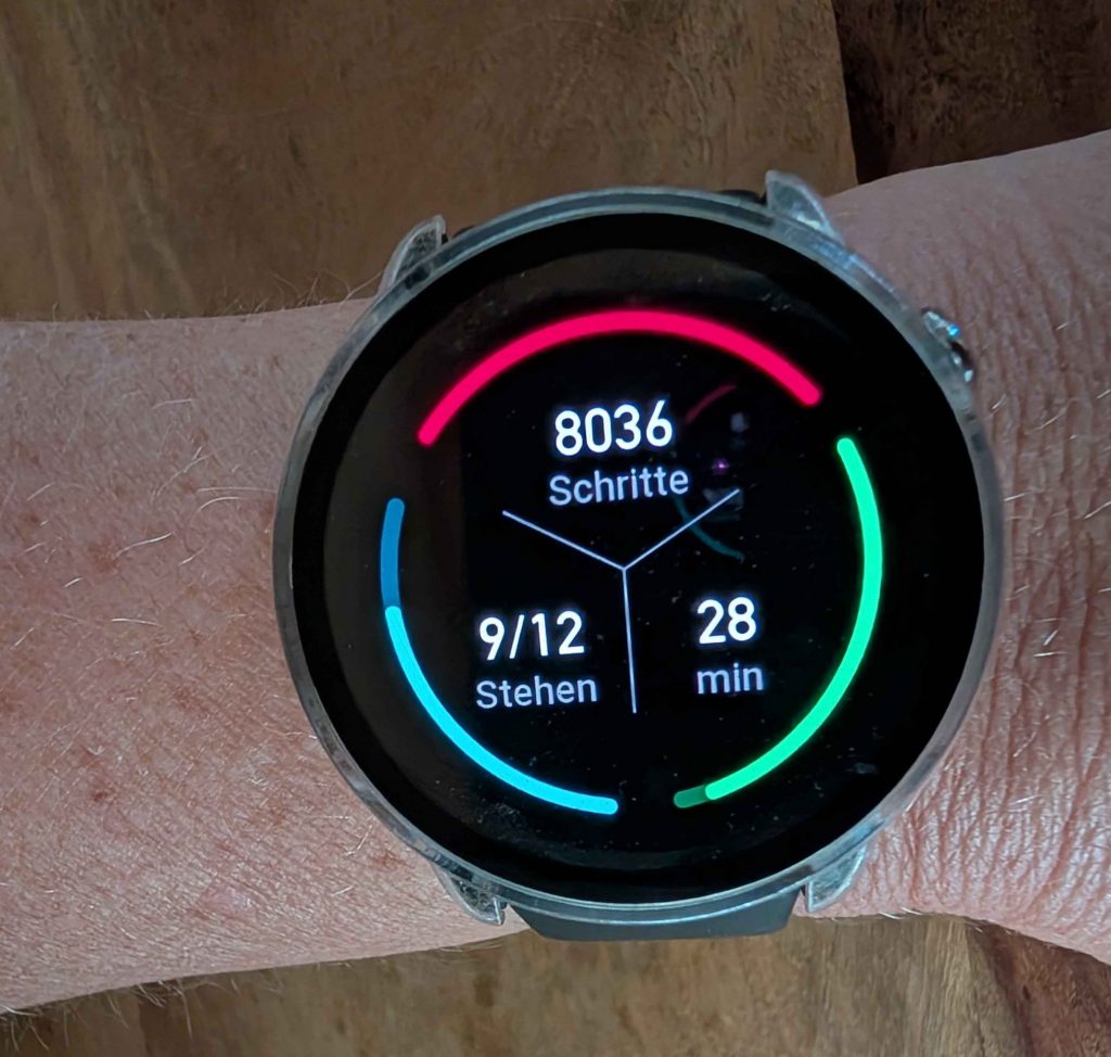 Das Schrittziel von 8000 ist für heute auch erledigt und meine Uhr immerhin schon fast zufrieden mit mir 🙂