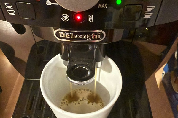 Aber erstmal gibt es einen Kaffee. Oh je, die Reinigungsanzeige blinkt… ein weiteres To-Do für den Tag.