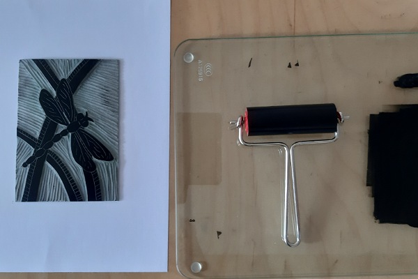Endlich Zeit für meine eigentliche Arbeit… ich muss noch ein paar Linolschnitte für meinen Kalender drucken.