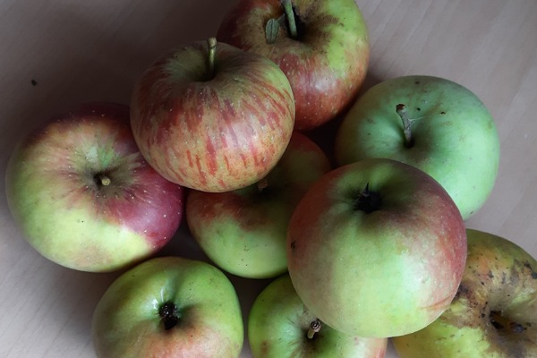 Während die Drucke trocknen müssen, geht es weiter mit den Arbeiten für die Bewirtung am Sonntag. Die Äpfel am Baum sind zwar noch nicht so ganz reif, aber das eben gesammelte Fallobst lässt sich schon gut für die Zubereitung meines Apfeltraums verwenden.