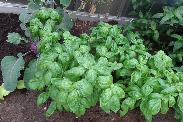 Mit müden Muskeln eine Schüssel voll Basilikum im Gewächshaus geerntet und…
