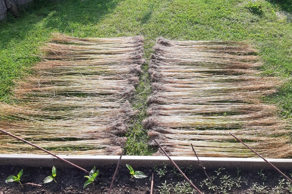 Doch der Sommer war ungewöhnlich trocken, und der Prozess zog sich hin. Immer wieder prüfte ich den Fortschritt, hob einzelne Stängel an, betrachtete die sich verändernde Farbe und Struktur. Es war ein langsames Warten, bei dem die Natur den Rhythmus vorgab.