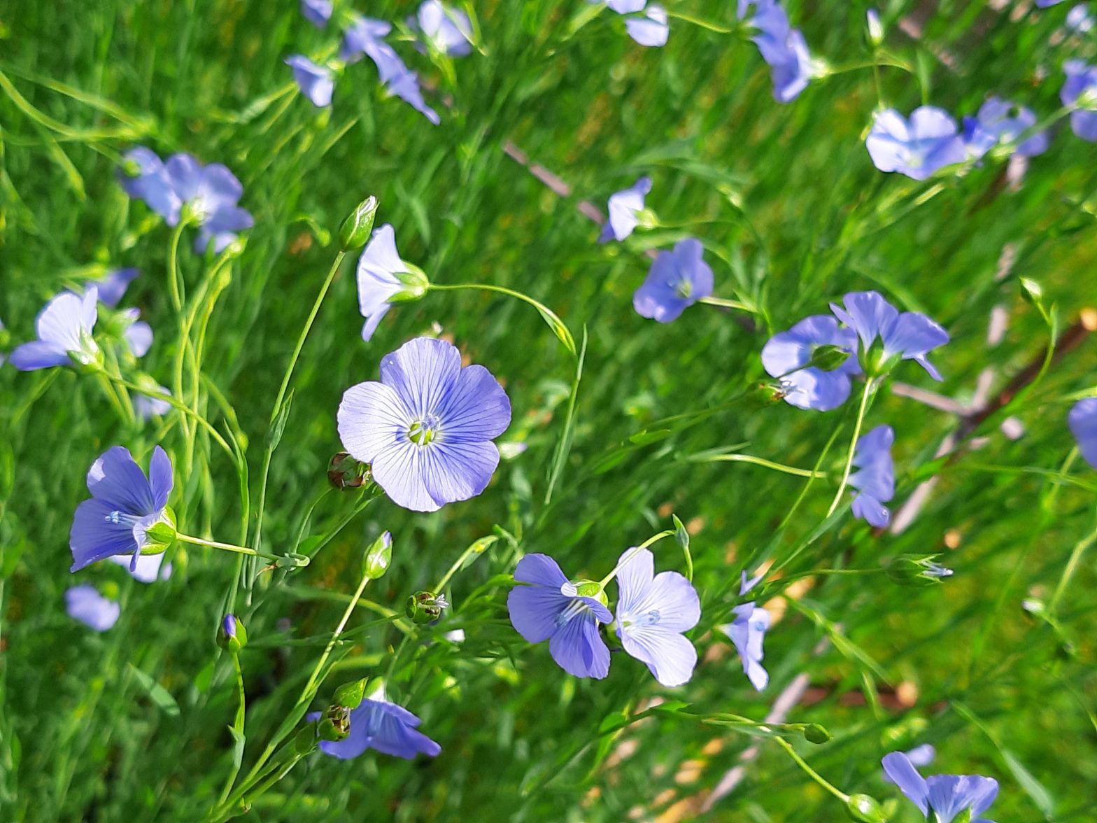 In den folgenden Wochen wuchs der Lein gleichmäßig und dicht. Anfangs nur wenige Zentimeter hoch, später kräftig und aufrecht, wie ein zartes, hellgrünes Meer im Beet. Ich befreite ihn regelmäßig von Beikräutern, damit er genug Platz und Licht hatte.