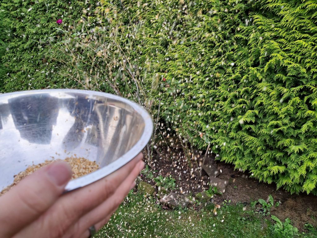 Das Beet lag den Winter über ruhig da, bereit für seinen besonderen Zweck. Am 10. April, dem 100. Tag des Jahres, war es dann so weit: die Aussaat. Dieser Zeitpunkt wurde früher traditionell für den Leinanbau genutzt und auch auch ich richte mich nach diesem symbolischen Tag. Denn 100 Tage nach der Aussaat wird geerntet.