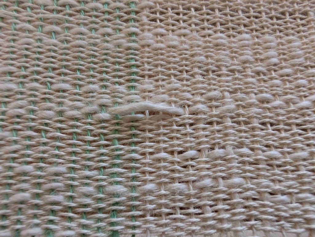 Ein Webfehler, entstanden durch ein paar durchhängende Kettfäden. Ist mir leider erst sehr viel später aufgefallen.