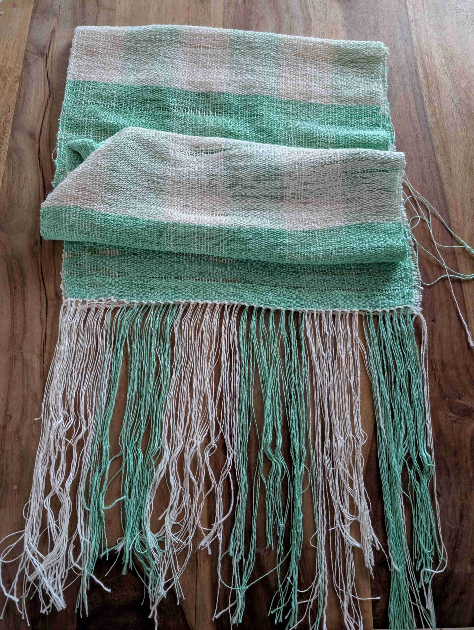 Der erste Schal ist fertig gewebt.