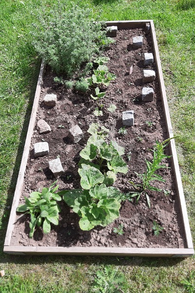 Außerdem fanden hier Färbertagetes und Färbermädchenauge ihren Platz. Beide waren bereits kräftig genug und kommen bestimmt gut mit dem trockenen Boden zurecht.