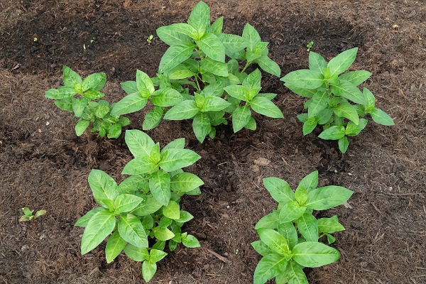Einige Wochen nach dem Auspflanzen ist gut zu erkennen, wie sich die einzelnen Pflanzen im Beet entwickeln. Die meisten haben sich gut eingelebt, neue Blätter gebildet und sichtbar an Größe gewonnen.