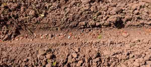 Die Samen habe ich gleichmäßig in die vorbereiteten Reihen ausgestreut. Dabei achte ich darauf, nicht zu dicht zu säen, damit die Pflanzen später genügend Platz haben, sich zu entwickeln.