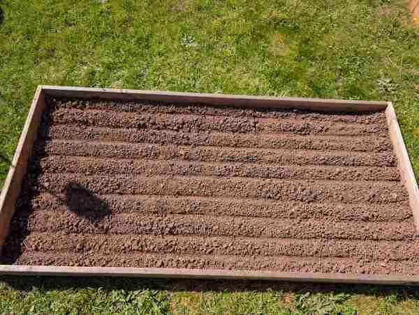 So entstehen gleichmäßige Reihen, die später nicht nur die Pflege erleichtern, sondern auch einen besseren Überblick über den Aufwuchs ermöglichen. Die Linien habe ich leicht in die Erde gezogen, sodass die Aussaat gezielt erfolgen kann.