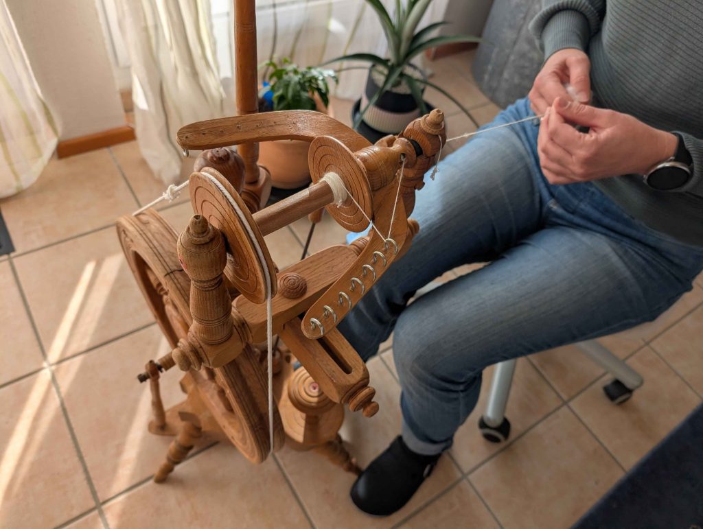 Ich habe auch gelernt, wann es besser ist, das Rad einfach stehen zu lassen, einen Tee zu trinken und später mit frischem Kopf weiterzumachen. Spinnen ist nichts, was sich erzwingen lässt. Es braucht Geduld, Wiederholung und Hingabe, und genau das macht es so wertvoll.