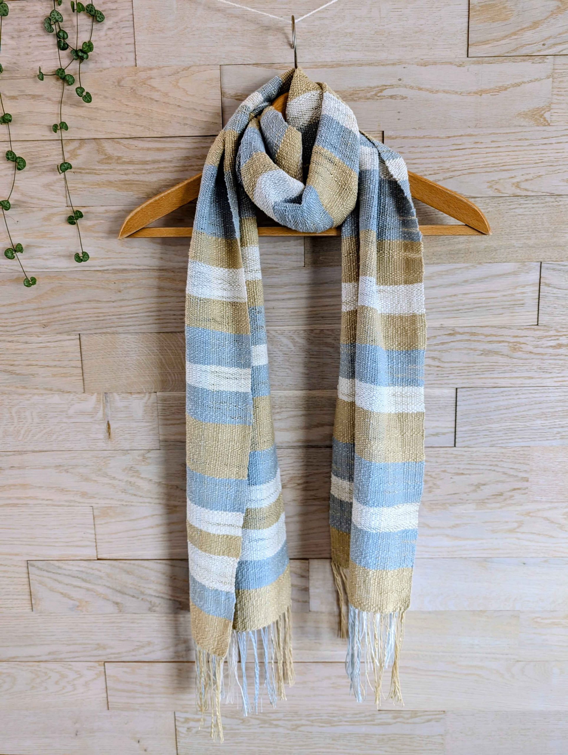 Dieser Schal gehört zu meinen ersten gewebten Arbeiten am Webrahmen.