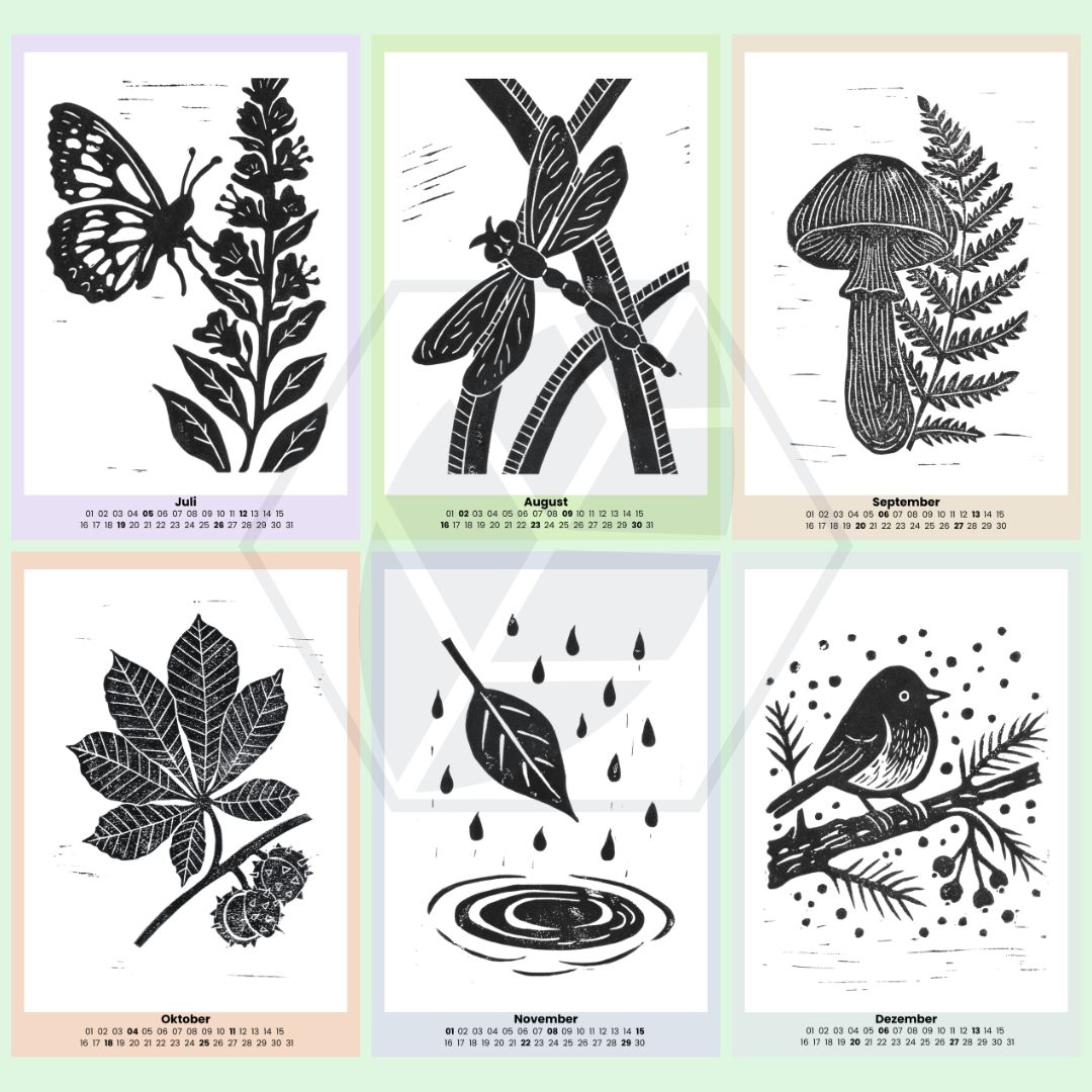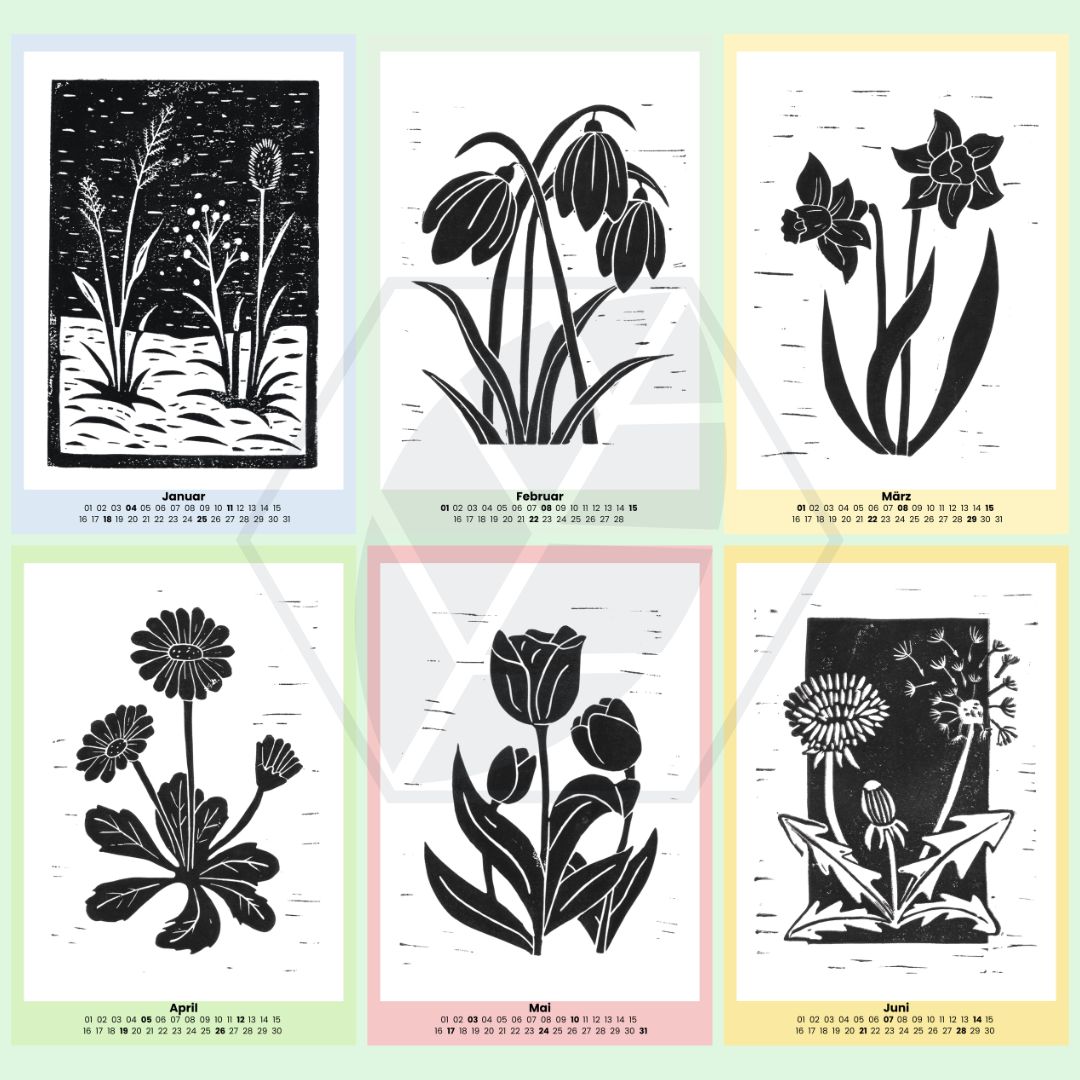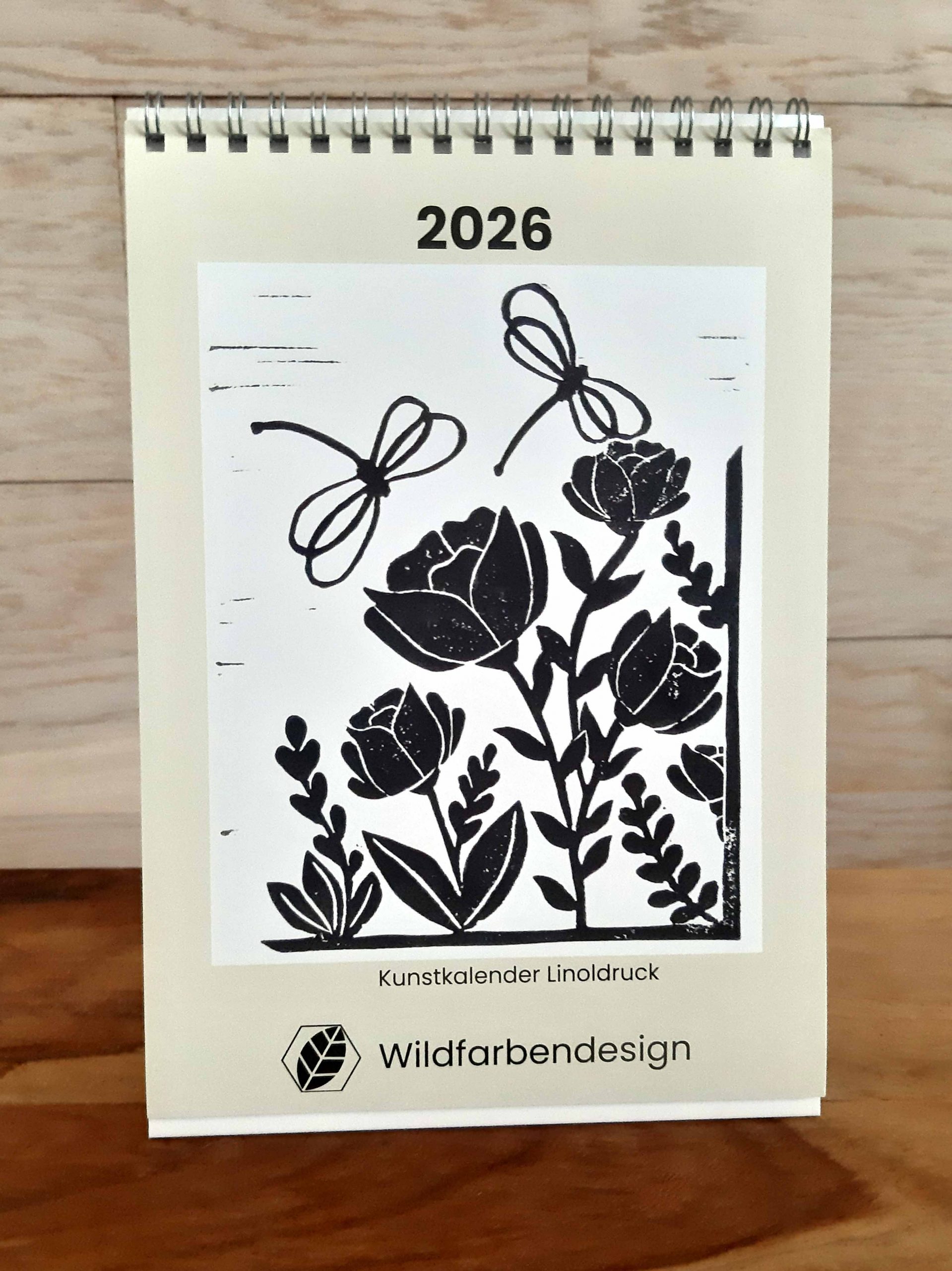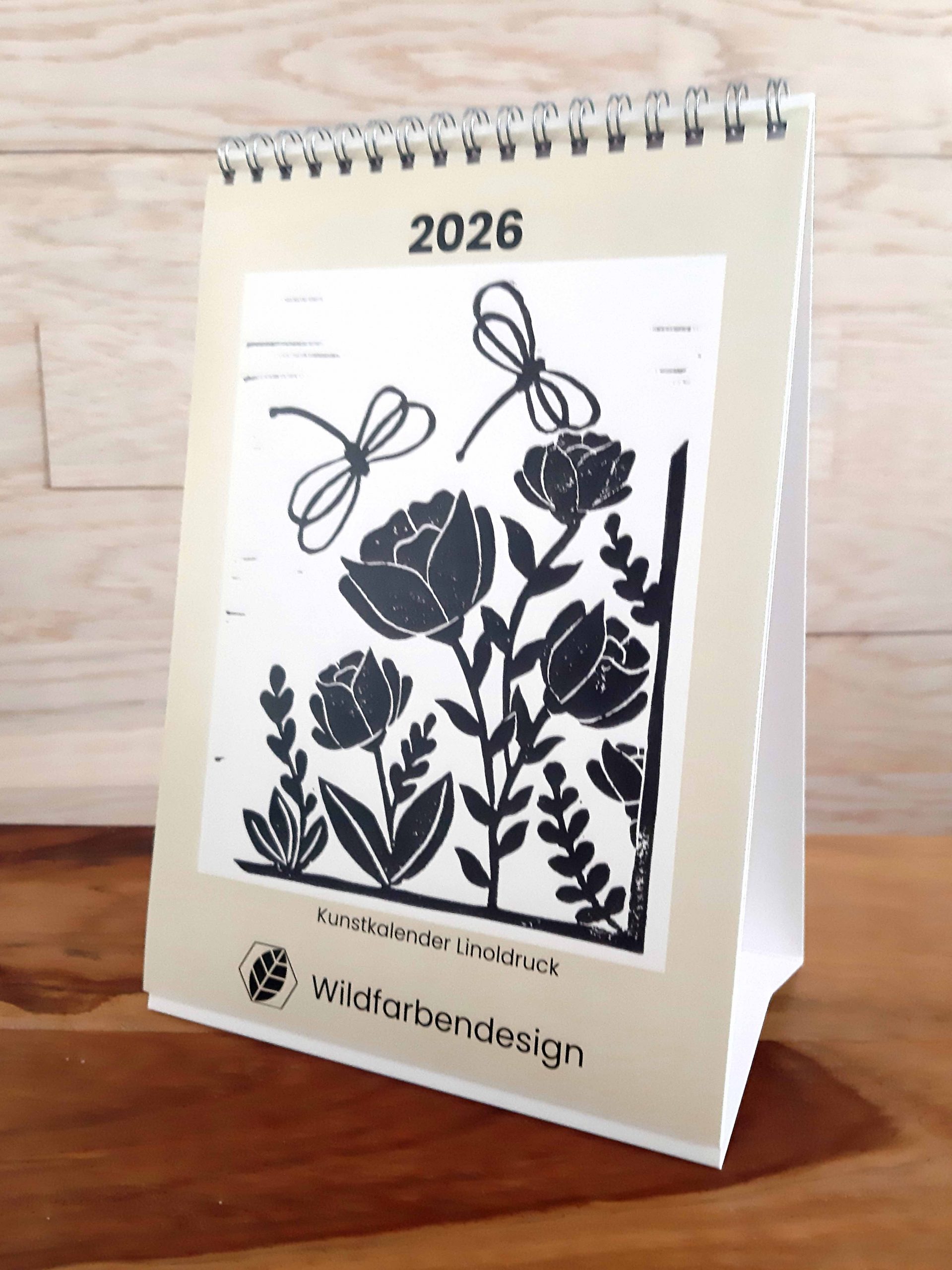 Dieser Tischkalender vereint zwölf Linoldrucke, die in meiner Werkstatt von Hand geschnitzt und gedruckt wurden. Für den Kalender wurden die Originale sorgfältig digitalisiert, sodass jede feine Linie und Struktur erhalten bleibt. So entsteht ein hochwertiger Kunstdruck, der die besondere Haptik und Tiefe des Linols bewahrt.