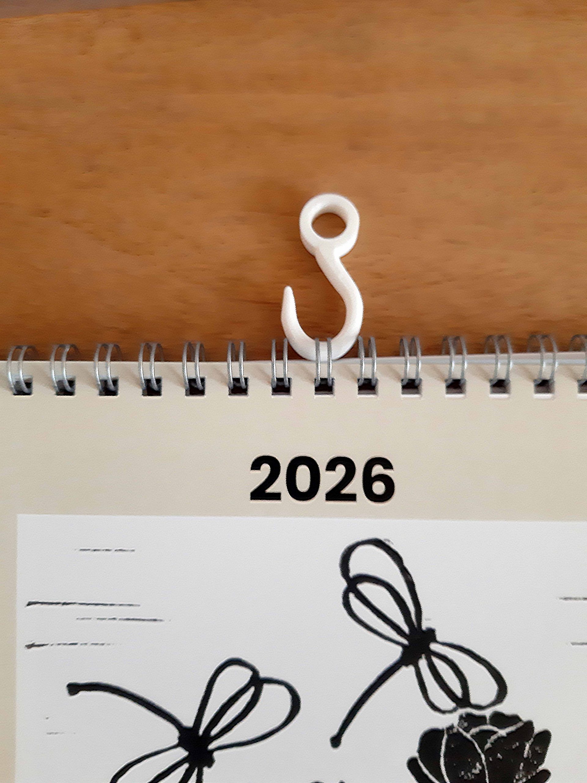 Du möchtes den Kalender lieber aufhängen? Dann bestell einfach die Variante mit Haken. Der kleine zusätzliche Haken lässt sich einfach in die Spiralbindung einhängen und an die Wand hängen.