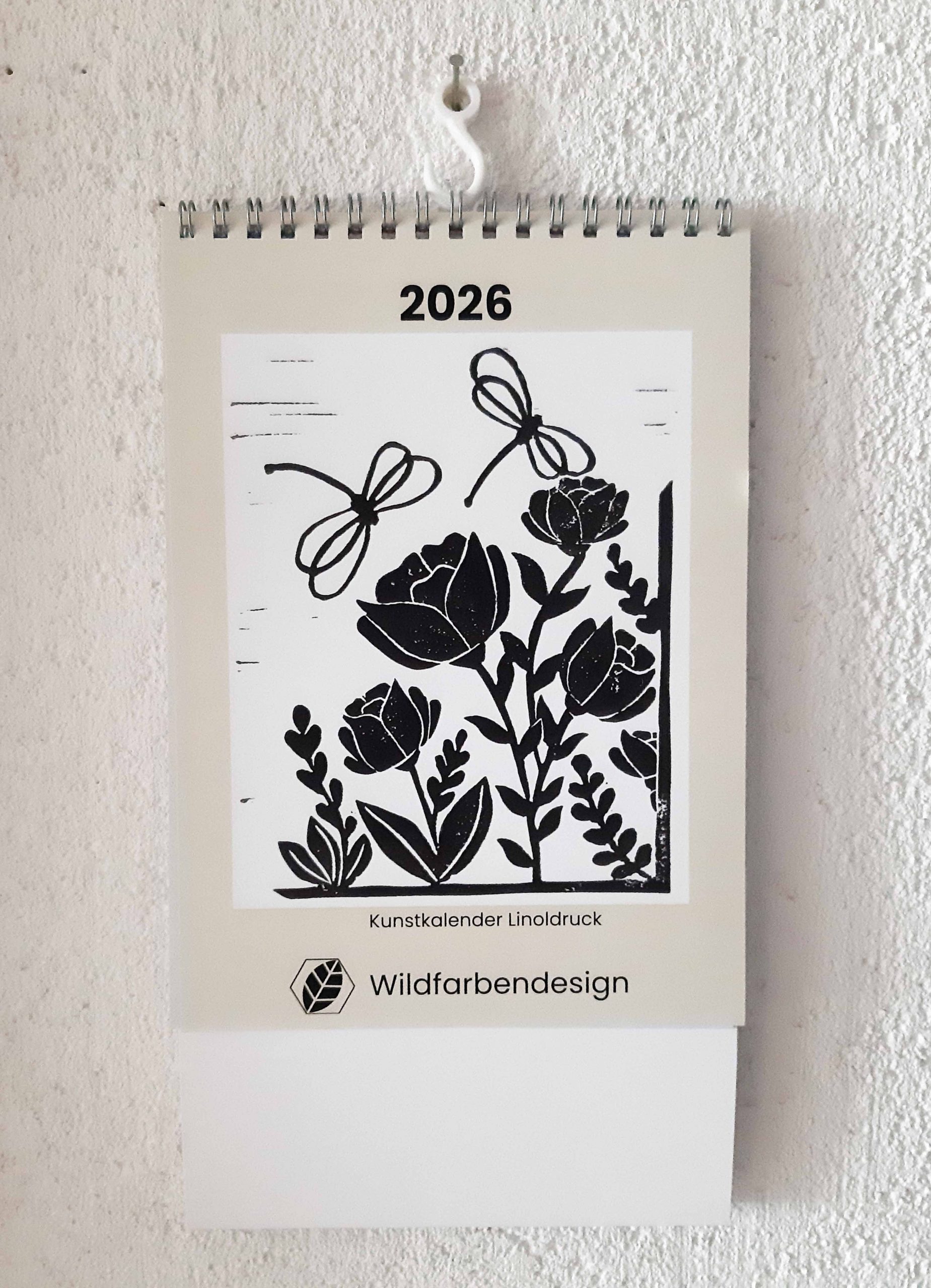 Der Kalender im handlichen A5-Hochformat lässt sich aufstellen und begleitet dich durchs Jahr – schlicht, künstlerisch und naturverbunden.