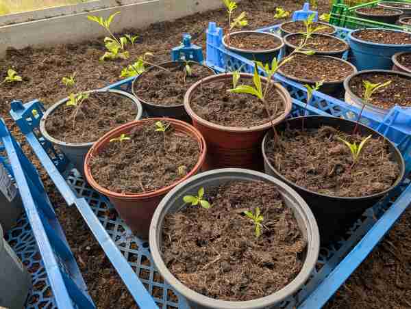 Für das Auspflanzen ins Beet ist es aktuell noch zu kalt. Nachtfröste sind weiterhin möglich, und die jungen Pflanzen würden das nicht gut überstehen. Im geschützten Raum des Gewächshauses können sie sich in Ruhe weiterentwickeln.