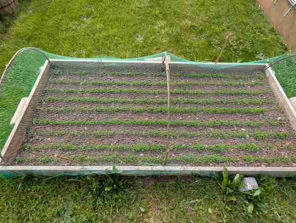 Durch das trockene und windige Wetter brauchen die jungen Pflanzen regelmäßig Wasser. Ich gieße derzeit etwa jeden zweiten Tag, damit sie sich stabil entwickeln können.